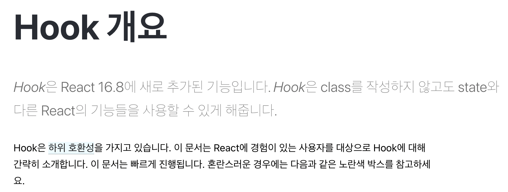 함수형 컴포넌트에서 state와 lifeCycle method를 잘 사용할 수 있게 만들어진 것